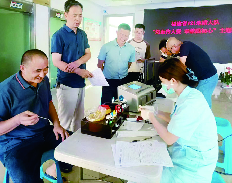 國慶節前夕,省121地質大隊積極組織開展“熱血傳大愛,奉獻踐初心”義務獻血主題活動?;顒蝇F場,該隊干部職工熱情高漲,紛紛擼起袖子,用熱血傳遞人間大愛,以實際行動展現省級文明單位風采?;顒赢斎?,全隊共計19名干部職工成功獻血6500毫升。: